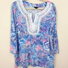 Brand: Talbots Size: Large Measurements: Please see photos for approximate measurements. Condition: In very good pre-loved condition. Color: White, pink, blue Material: Pima Cotton, Micro Modal Features: Lace trimmed collar Lightweight, soft fabric 3/4 length sleeves Tags: spring, summer, travel, resort wear, cabana, beach, pool, resort, cruise, warm weather, casual, vacation, summervibes, beachvibes, preppy, floral, classic, cotton Pre-owned clothing items are properly cleaned, washed, and/or steamed at high heat before listing.