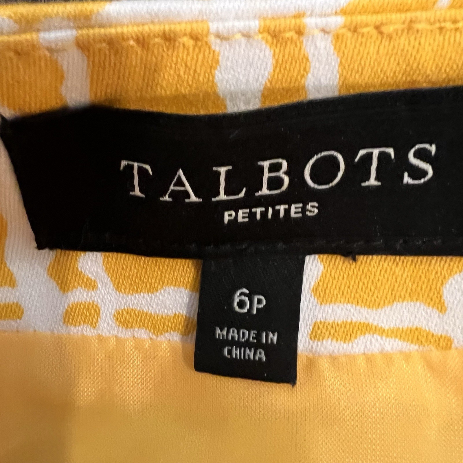 This Talbots skirt in size 6 petite features a yellow and white pattern, making it a stylish and versatile addition to any woman's wardrobe. Measurements in photos Very good condition