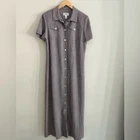 vintage Talbots 90's maxi dress size 8 burgundy gingham check print abalone buttons The shoulder pads can be removed, snap buttons great condition! rayon/acetate material Length from top of shoulder to bottom hem 51”