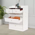 This storage cabinet is a game-changer for keeping my clothes and accessories neatly organized! The six spacious drawers fit everything from sweaters to socks, and the tall design saves so much floor space. The MDF and PVC finish feels durable, and the smooth-gliding drawers make it super easy to access my stuff. Perfect for small bedrooms—functional, stylish, and totally worth it!