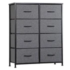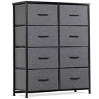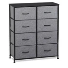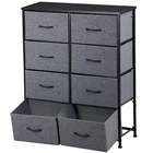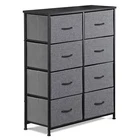 Specifications: Color:Gray Black Item Weight:11.85kg/26lbs Overall Sizes: 34.5" x 11.8"x 38.8" Materials: Non-woven Frabic, MDF, Metal Weight Capacity:15kg/33lbs (top broad) 5kg/11lbs(drawer) Features: Multipurpose: 8 drawers dresser fits in many locations throughout your home. It can be used as a storage stand in entryway, as a storage dresser in bedroom, as an storage unit in living room, as a toy storage in nursery, or placed inside the closet to create extra storage. High Quality: Strong steel frame, durable wood board, adjustable plastic feet and premium fabric drawers all contribute to its sturdy construction to ensure durability against wear and tear over time. Stylish & Smart: Simple and modern style makes it fit to any decor. Lightweight design and 8 removable drawers are convenient for daily use. It works well in small areas while providing plenty of storage space, and mixes & matches with Somdot storage dressers or chest of drawers for a unique home style. Easy Assembly: Hardware is included for hassle-free assembly. Follow the instruction and you can put it together in a few steps.