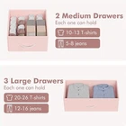 Wooden Storage Tower Chest of Drawers with 5 Drawers Storage & 4 Hooks, 47.2" Tall Dresser Organizer Unit Closet with 2 Open Shelves, Fabric Dressers for Bedroom, Living Room Furniture,Pink 【 5 Closet Storage Drawers of 2 Sizes 】: This closet drawer organizer is featured with 5 drawers, perfect for organizing clothes, toys, socks, underwear, scarves, blankets and other accessories. 3 large ones measured of 22 x 11 x 7.8 inches each, 2 medium drawers measured of 10.6 x 10.6 x 7.8 inches each. Clothes drawer design purpose is to keep your cloths away from dust, dots or other pollution. This closet organizer bins not only act role on storing clothes, but also protect your health. 【 2 Open Shelves with Side Panels Design 】: This dresser organizer are measured of 23.6 x 11.8 inches, which is wide enough to store things. Top can display vases, photo frames, lamps etc decorations, the second one can place glasses, alarm clocks, books, chargers and other sundries etc ordinary things. This open shelves design is convenient and practical, also artistic as a decor with drawer unit. This storage chest for bedroom side panel can perfectly prevent things from falling and keep safe. 【 4 Hooks Cloth Dresser 】: Besides the closet drawers for clothes, this organizer also designed with 4 side S hooks, which is easily movable and perfect for hanging hats, scarves, hairband, handbags, umbrellas or hurry bags. Anti-scratch treatment at the both end of the hooks make hanging fabric issues safe and avoids damage to your clothes or clothing things. You can also store these hooks in the drawers if you do not need them. Very flexible and convenient details design. 【 Sturdy Anti-tip Kit & Adjustable Feet Structure 】: The chest of drawer is made with sturdy metal frame, and its back is equipped with more reinforced crossbar, which offers high strength support and ensure years of use. Anti-toppling device is provided to prevent it from falling down. Height adjustable feet makes it more easy to keep balance and prevent wooden floor from scratches. These all enable our bedroom closet to bear a large capacity clothes and good bearing. 【 Safe Non-woven Fabric & MDF Materials 】: The wooden drawer chest is made of solid and wear-resistant MDF and healthy non-woven fabric. With high quality breathable non-woven synthetic fabric as surface layers, MDF board as middle layer, our fabric drawer organizer of special 3-layer structure design is more durable, flat and not easily deformed compared others only fabric layer. Additionally, our whole dresser organizer for bedroom material has been tested, you can have no worry to store clothes 【 Easy to Assemble & Cleaning 】:The package includes all the tools and accessories, you can install it in 20 minutes with the instruction. The wood dresser is slim and light, and does not take up much space. Perfect Gift for a housewarming or your family and friends. Overall dimension: 23.6"D x11.8"W x 47.2"H. And it is easy to do the maintenance, wipe with a damp cloth and let air dry.