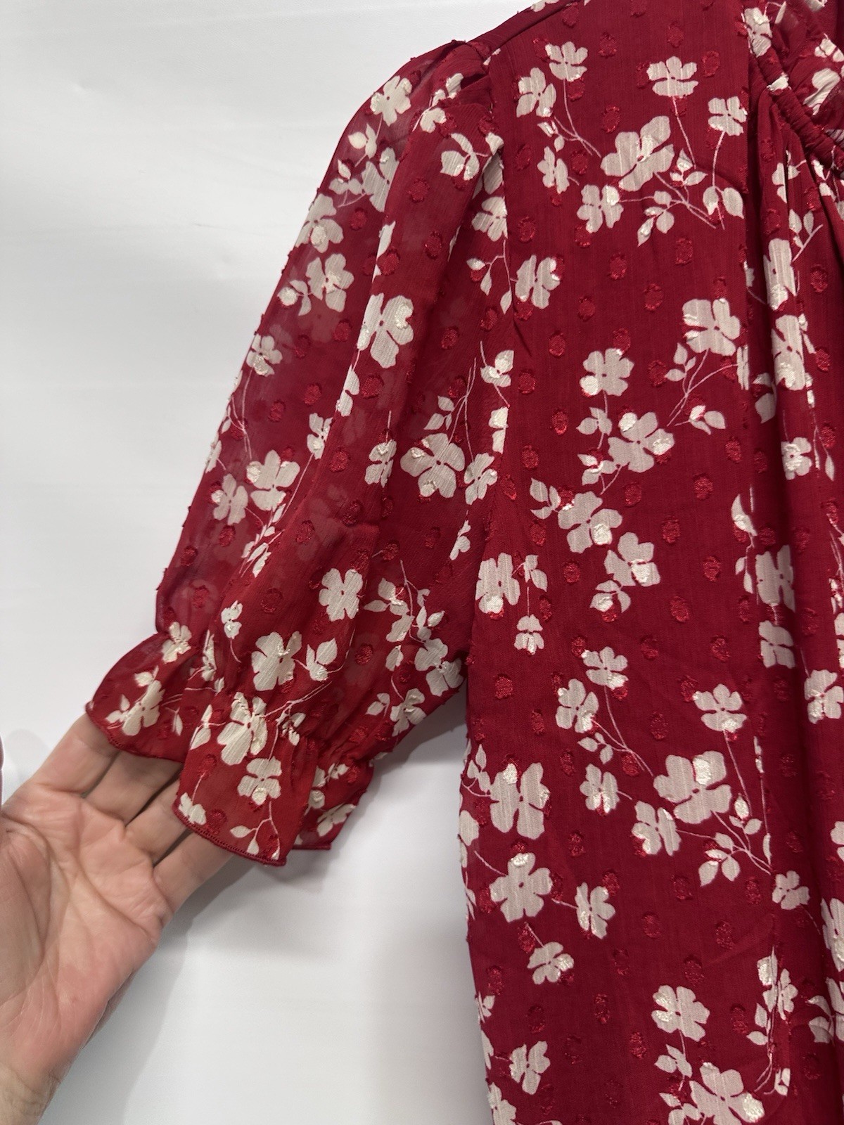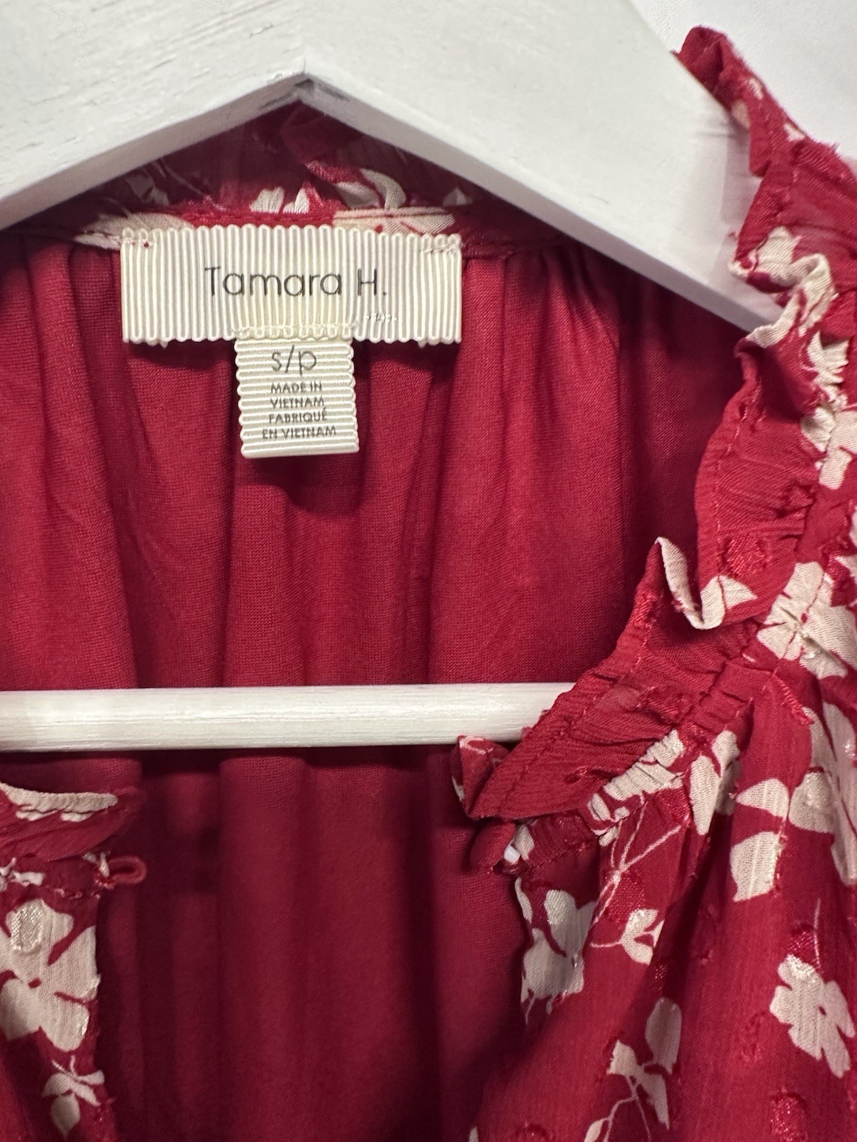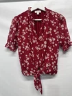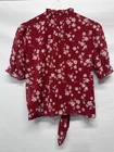 The Tamara H Red Blouse Top is a stylish and versatile addition to any woman's wardrobe. This floral patterned blouse features puff sleeves with ruffle accents and a tie front closure for a trendy look. Made of polyester chiffon, the top is machine washable and perfect for casual or travel occasions in the summer, fall, or spring. With a bohemian theme and 60s-inspired design, this blouse is a great choice for those who love a blend of retro and modern styles.