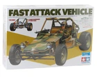 Versatile & Fun Military Style R/C Car Experience the thrill of military-inspired off-road action with the Tamiya Fast Attack 2011 1/10 2WD Electric Buggy Kit—a perfect blend of scale realism and rugged performance, designed to conquer any terrain with its authentic detailing and robust engineering. About the Fast Attack 2011 Design The Tamiya Fast Attack 2011 1/10 2WD Electric Buggy Kit offers an exceptionally realistic scale appearance, making it a standout model for collectors and hobbyists alike. The attention to detail is evident in the meticulously molded ABS plastic body, which captures the rugged, utilitarian look of a military-style special vehicle. The included roll cage adds to the authenticity, providing both a functional and aesthetic element that enhances the vehicle’s off-road readiness. The driver figure is intricately designed, adding life to the model, while the M60 machine gun and soldier figure contribute to the military-themed realism. Semi-pneumatic grooved front tires and block-pattern rear tires not only provide superior traction but also replicate the look of off-road tires used on actual military vehicles, completing the model’s authentic and commanding appearance. Drivetrain & Electronics The drivetrain of the Fast Attack 2011 is engineered for both durability and performance, making it well-suited for challenging off-road conditions. The model features a rear-wheel-drive (2WD) setup powered by a Type 540 brushed motor, which is managed by the included HobbyWing THW 1060 Brushed Motor ESC. This electronic speed controller is compatible with 2-3S batteries, providing flexibility in power options and ensuring responsive throttle control. The gearbox is enclosed, a crucial feature that protects the internal gears from dirt and debris, ensuring smooth and reliable operation even in the harshest environments. The gear differential, combined with plastic bushings, offers a balance of performance and longevity, making the Fast Attack 2011 a robust and capable off-road buggy. Suspension The suspension system of the Tamiya Fast Attack 2011 is designed to handle rugged terrains with ease, offering a smooth and stable ride across a variety of surfaces. The fully independent front and rear suspension employs trailing arms and friction dampers, which work together to absorb shocks and maintain tire contact with the ground. This setup is ideal for off-road driving, where uneven terrain can challenge a vehicle’s stability. The wide 186mm tread enhances the buggy’s off-road capabilities by providing a stable platform that reduces the likelihood of rollovers and improves handling. The sealed gearbox further complements the suspension system by preventing debris from interfering with the drivetrain, ensuring consistent performance regardless of the conditions. Together, these features make the Fast Attack 2011 not just a visually impressive model, but a highly capable off-road machine as well. Features: Realistic driver figure and M60 machine gun Durable molded ABS body and roll cage Fully independent front and rear suspension Enclosed gearbox for dirt and debris protection Includes HobbyWing THW 1060 Brushed Motor ESC (2-3S) Semi-pneumatic grooved front tires and block-pattern rear tires Camouflage pattern stickers included for scale realism Lightweight yet durable ABS tub-style chassis Adjustable gear ratio for optimized performance Plastic bushings and dogbone-type driveshaft joints for enhanced durability Includes: (1) Fast Attack 2011 1/10 2WD Electric Buggy Kit (1) HobbyWing THW 1060 ESC (2-3S) (1) 540-Brushed Motor (4) Wheels & Tires Body Set Needed To Complete: (1) 2-Channel Radio/Receiver System (1) Steering Servo (1) 1-2S (7.2-7.4V) Battery (1) Compatible Charger Tamiya TS paint Specifications: Scale 1:10 Drive 2WD Power Source 2S LiPo Length 16.93in (430mm) Wheelbase 10.04in (255mm) Width 8.66 (220mm) Height 5.91in (150mm) Weight 42.33oz (1200g) Assembly Level Kit *NOTE: RC Kits are an unassembled Remote Control Model that require assembly, racer selected electronics, and other racer provided items. Photos of assembled kit are for illustrative purposes only. For a complete list of needed items to drive this kit please see the list above. Manuals: User Manual About Us | View Store