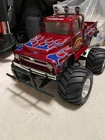 This Tamiya Midnight Pumpkin RC car is a beast! The custom paint job looks amazing with its frost red finish, and the upgraded aluminum wheels and CVA oil dampers give it a premium feel. Everything works perfectly—the new QuickRun 1060 ESC and servo are smooth. Never driven, just tested, so it's in flawless condition. Just add your own receiver, battery, and radio to hit the road. A must-have for RC enthusiasts!