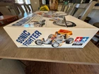 This is a spectacular and very rare Tamiya Sonic Fighter. Gorgeous condition, look at the corners on this box and how bright the box colors are. The bubble around the motor is a little compressed and can probably be pulled out if someone know how to do it without damaging the kit. This one is tough, very rarely for sale. Just selling many of my kits. Please contact me if you have any questions