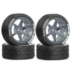 RC Wheels and Tires Metal Wheel Rims for Tamiya TT01 TT02 XV01 TA06 A959 PTG2 HPI KYOSHO PTG2 1:10 Street Touring Drift Car Features: The 1/10 rc on road tires and wheels are not pre glued on rims, please clean the joint surface of the rim and tire before gluing. This 1/10 rc rally racing tires are for 1:10 Scale Street Touring Drift Car Tamiya TT01 TT02 XV01 TA06 A959 PTG2 HPI KYOSHO HSP PTG2 Traxxas and so on This 1/10 street tires of size,Outer diameter:65mm(2.56in),inter diameter:52mm(2.04in),width:27mm(1.06in);wheels drive hex:12mm(0.47in),Wheels Rims Offset Approx: -5mm..Please check the 1/10 rc touring tires size info before buying. The 1/10 rc drift Car tires are dued to strong material,these 1/10 tires are more practical and durable. This rc rally wheels and tires features an aggressive tread pattern ,its special tread pattern for excellent grip and traction on all terrain. The 1:10 rc touring tires is small size excellent workmanship and perfect style,easy to disassemble and install,more convenient to use.And excellent choice will enable you to enjoy more fun. Specifications: Material: Rubber,Aluminum alloy,Foam. Color: Black,Blue,Silver,Titanium,Purple Quantity: 4Pcs /set Weight: 190g/set Tyre outside diameter: 65mm/2.56in Tyre inner diameter: 52mm/2.04in Tyre width: 27mm(1.06in) Wheels Diameter:52mm / 2.05inch Wheels Width:26mm / 1.02in Wheels Rims Offset Approx: -5mm Wheel Drive Hex: 12mm(0.47in) Please make sure our Tires and wheels are the correct size you are looking for to avoid returning the product and save you time. Package List: 4pcs * 1/10 on road tires and wheels NOTICE: The wheels and tires are not glued together and must be glued before use. Please carefully check the tire size before purchase, whether it is the same as your model tire size, and confirm it again before payment, so as not to return the refund, thank you, wish you a happy shopping. Light shooting and different displays may cause the color of the item in the picture a little different from the real thing.The measurement allowed error is +/- 1-3cm.