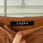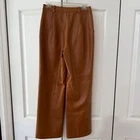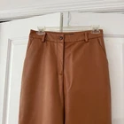 These tan wide leg pants feature a high-waisted design and a relaxed fit, offering a chic and contemporary style. The smooth, glossy finish enhances their luxurious appeal, making them a versatile addition to any wardrobe. In excellent like new condition. - wide leg - high waist - zip and button fly - front pockets - cropped Faux leather, pleather Measurements Waist 28” Rise 11” Inseam 28” Minimalist, contemporary, casual, work, office siren, classic, chic, Shay Mitchell, Hailey Bieber, model off duty, moto,
