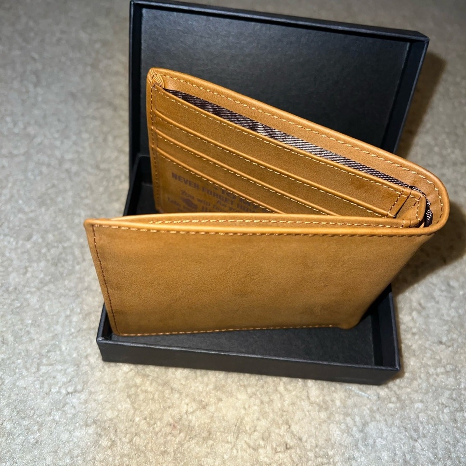 Elegant tan leather wallet with a heartfelt message. Perfect for daily use and a thoughtful gift. Comes with box.