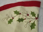 Description:2-20-18-1 Elegant Christmas tree skirt is made out of tan linen, red trim and red satin lined fabric underside. It has an applique of holly leaves & berries that extends into a beautiful scroll design and has a 2 red button and loop closure. It is fully lined. This tree skirt is quality-made and will last for years! •Size: 48" •Shape: Round •Color: Tan Linen (lined) •Trim Color: Red Great pre-owned condition- no rips holes or stains – please view all pictures as they are part of the description I DO MY BEST TO DESCRIBE EVERY LISTING BUT I AM NOT AN EXPERT AND ITEMS ARE SOLD “AS IS”. My idea of great/good may be different than yours, so EXAMINE PHOTOS CAREFULLY since they are binding and a supplement to the word description in case I should miss something. If I fail to mention something, it does not qualify as “item not as described” if it shows in my pictures. EACH PHOTO IS WORTH A THOUSAND WORDS AND THEY ARE OF THE EXACT ITEM YOU WILL RECEIVE. RETURN POLICY: Returns are acceptable ONLY if the item doesn’t match the description, is defective, or grossly misrepresented. THIS MEANS I DO NOT ACCEPT RETURNS for FIT, SIZING, COLOR ISSUES, OR BUYER'S REMORSE. Please zoom and view ALL pictures for more details as they are part of the description. Email me with any questions you may have. Please note: Buyer pays for ALL shipping and fees. If you use an eBay shipping label, it will be deducted from your refund amount. FEEDBACK : If you are satisfied with your purchase, I would love to get positive feedback from you. I will then do the same for you!