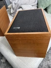 I am unable to test these due to the types of connectors on the back. I assume this is part of a system that I am not familiar with. From what I can tell, though, they are in decent condition and the speakers look good. There is a bit of dust in the front grills and there’s a bit of peeling vinyl on the back. There are some scratches in the wood and a small amount of corner damage as shown in the photos. The damage is hard to see and it’s not significant. This shouldn’t affect the sound at all. By the way, if anyone can tell me how to test these with these connectors, let me know. These are being sold as is and as shown in the photos. I am unable to test so they have been priced accordingly.