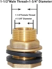 Item Package Quantity: 1 | Size: 1-1/4" x 1-1/2" Commonly used in water towers, water inlet and outlet and self-made water storage barrels, which can be used for various pipes, faucets, hoses, fittings, etc. Made with high quality brass. Durable, the internal and external thread are smooth. Easy to use. Note: These connectors contain lead, not for potable water. Comes with 2 gaskets, embeded gasket provides strong seal without slipping. Using thread linking to make connection more firmly.