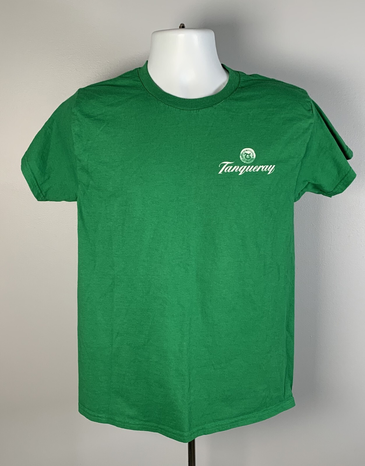 SIZE: medium CONDITION: new without tags MATERIAL: 100% cotton COLOR: green EXTRA: Tanqueray with a distressed logo above it on front NECKLINE TO HEMLINE MEASUREMENT: 25.5" ARMPIT TO ARMPIT MEASUREMENT: 18.5" BRAND: Gildan BOX W