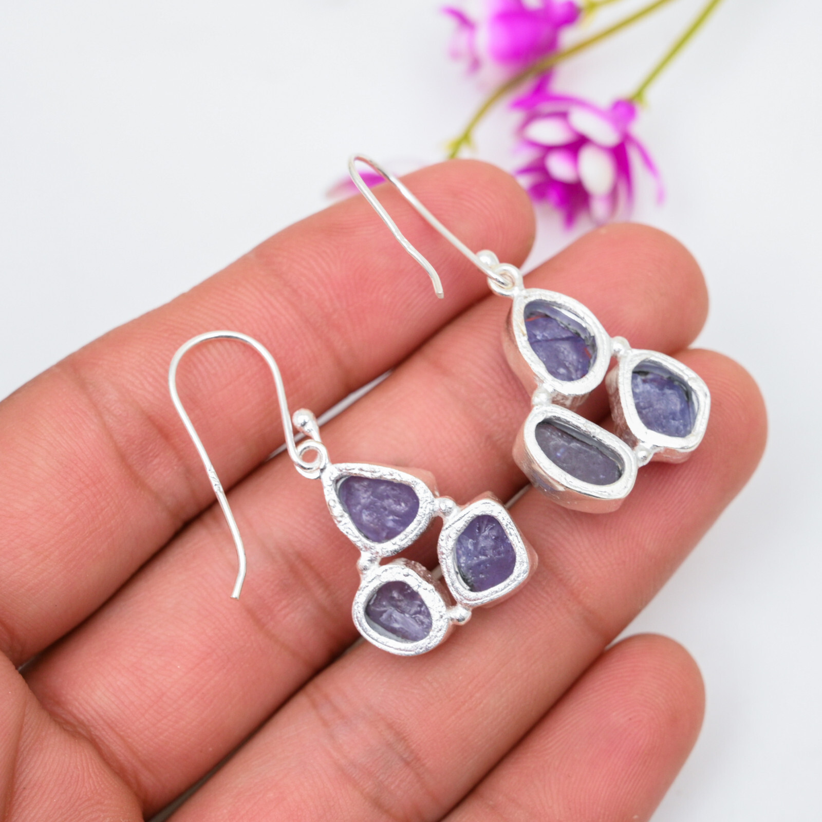Tanzanite Gemstone Earrings in 925 Sterling Silver Handmade Wedding Jewelry Gift
