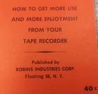 Tape Editing and Splicing Vintage booklet Tape Recorder Robins Industries 23 pg. 1957 How to get more use and enjoyment from your tape recorder. Hard to find Instructions for editing and splicing from 1957.
