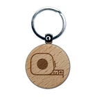 Tape Measure Construction Icon Engraved Wood Round Keychain Tag Charm