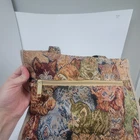 Adorable tapestry-style cats tote bag featuring a vibrant and detailed woven design with various kittens in different colors. The bag measures approximately 12” wide x 11” high, with double shoulder straps measuring 13” each. Depth of bag: approx. 5”. It has a secure hook & loop main closure, one large interior compartment, a small inside pocket with zipper, and a front slip pocket with magnetic snap. Pre-owned in good condition — no holes or major stains. Perfect for cat lovers, quirky vintage fashion, or everyday casual use. Some colors may vary in person versus the photo. Cameras do not always pick up the colors exactly and the settings on the device you are viewing this item with may present the color a bit differently. Please check out my other listings :) Shipping via USPS same or next business day Thank you for stopping by.