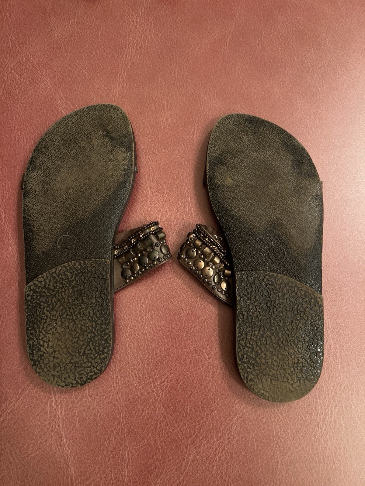 The Target Brown Double Strapped Beaded Sandals in size 9 are stylish and comfortable women's shoes perfect for the summer season. Featuring a double strap design with beaded accents, these sandals add a touch of flair to any outfit. The brown color complements various ensembles, making them a versatile addition to any wardrobe. Perfect for casual outings or dressed-up occasions, these sandals are sure to become a go-to choice for any fashion-forward woman. Size: 9 Condition: Used gently, slight wear.