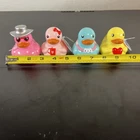 This product is a set of 4 small multicolor rubber duck figurines featuring various designs related to Valentine's Day and the Target Bullseye Playground theme. The duckies include features like a BFF, cowboy hat, and Stanley Cup designs, all in a Valentine's Day theme. These figurines do not require any additional parts and are easy to care for. They are suitable for display in any room, including the bathroom, and are a fun addition to holiday and seasonal décor.