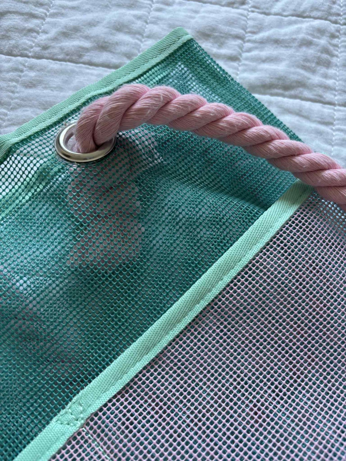 Closet clean-out! Sad to part with this guy but it's time. The Art Class from Target Mesh Tote bag in Teal & Pink with rope handle details is a stylish and functional accessory perfect for art enthusiasts. This tote bag features a feminine pink color scheme with matching handles and hardware, giving it a chic and trendy look. The mesh design and teal accents add a touch of sophistication, making it a versatile option for any outfit. With a spacious interior lined in pink, this tote is both fashionable and practical for carrying your art supplies or everyday essentials.