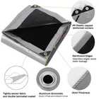 [1.FULL SIZE]: Our poly tarps are always cut larger, so the finished size is the full size. Generally,'Finished size'<'Full size'. Because each side should be folded about 2 inches after closing seams and hemming in production. For example,a standard 6x8 feet waterproof tarp will be rough cut at this size, and then finished about 4 inches shorter each side.That’s mean it’s almost 5% shorter than the listed size after finished. So it’s wise to choose our waterproof tarp with 'Finished size' ='Full size'. [2.HIGH QUALITY]: <1>Waterproof, Shrink-Proof, Hard to Tearing. <2>Portable,Washable,Durable and Reusable. <3>100% Non-Recyclable Polyethylene. <4>Tightly Woven and Coated. <5>All Edges Heat-Sealed and Reinforced with PP Rope. <6>Plastic Reinforced Corner <7>Rust-Proof Aluminum Grommets Every 3 Feet and on Each Corner. [3.MULTI-APPLICATIONS]: Great for endless applications: Industrial, Construction, Agricultural,Landscaping, Homeowner, Painting, Camping, Hunting, Storage and so much more! <1>For machine: Cover truck,dump trailer,flatbed,boat,car,motor vehicle. <2>For garden: Cover plant and flower,lawn,sandbox,barbecue grill,bench. <3>For agricultural: Cover wood,hay, silage, collect leaves as a leaf tarp. <4>For outdoor activity: As a picnic mat for camping tent, hammock tarp. <5>For pool: As a pool ground cloth or under pool mat, or above ground pool cover. <6>For home use: As a ground tarp or drop sheet for painting or furniture. <7>As a floor mat to protect the floor. <8>As roof tarp for shade or emergency roof patch material. [4.NOTICE]: A certain space needs to be reserved for better protection when use a tarp. <1>Always make sure that your tarp is tied down securely. <2>Keep tarps away from fire. <3>Don't let children play with tarps. [FULL FINISHED SIZE]: Our waterproof tarps are always cut larger, so finished size is true full size (+/- 3%). For example, an 6x8 tarp is really 6x8 feet. We offered 5 sizes for your choice. [Warm Tips]: Please measure your property for the right dimensions and choose a bigger size for full cover and a better protection. [HIGH QUALITY]: Unlike other polyester tarps made of recycled or mixed materials, all our PE tarpaulin are made of 100% polyethylene. Tightly-woven and double laminated coated, it’s sturdy and long-lasting for waterproof, ensured best shelter for whatever you keep dear. [STRONG & DURABLE]: Our tarp cover has rust-proof aluminum grommets on every 3 feet and each corner for securely tie-down. All edges heat-sealed and reinforced with PP rope, enhanced difficulty to tearing and deformation in the same weight. [CONVENIENT FOR USE]: Benefited from the high-quality material and exquisite craftsmanship, our heavy duty tarp can provide most daily occasions. And our waterproof tarp is washable, lighter than canvas, so it’s easy to fold and store. [MULTI-PURPOSES]:The green/black tarp can be used for various purposes and on different sites.Protect your belongings from rain,snow,wind,sand,dirt and sunlight.For example, cover wood,truck,outdoor furniture,pool.As a tarp for camping,painting,waterproof tent,under pool mat and so on.
