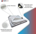 ๐๐๐ซ๐ฉ๐ฌ๐๐จ๐ฐยฎ offers premium-grade white heavy-duty tarpaulin covers that are cost-effective and suitable for a wide variety of industrial, commercial, or construction tarp applications. These versatile tarps are crafted from premium grade 3 Ply material and both sides are coated with a solid polyethylene that is incredibly durable, waterproof, and flexible. They can last long through complicated building jobs. These poly tarps feature Hems reinforced with rope, heat-welded seams, and Arctic temperature flexibility, so they can withstand even the toughest conditions. They will not be torn easily. The color is white. The canvas tarps are crafted with aluminum grommets in the corners for secure tiedown and spaced approximates every 18-inches around the perimeter. You can create a "tent" for camping, fairs, and more outdoor activities with our tarp cover sheet. Perfect for picnics or groundsheets, covering vehicles like cars, trucks, trailers, boats, agricultural materials, furniture, etc. ๐ ๐๐๐ญ๐ฎ๐ซ๐๐ฌ: Premium-grade white heavy-duty tarpaulin covers Constructed of 3 Ply material and both sides are coated with a solid polyethylene Incredibly durable, waterproof, and flexible Flexible and provides long-lasting durability Fabric Weight: 6 oz. Per Square Yard Mesh Count: 12 x 14 Mesh count per square inch Denier: 1200 With aluminum grommets Great for construction, agriculture, commercial and industrial applications ๐๐ฅ๐๐๐ฌ๐ ๐๐จ๐ญ๐: Each heavy-duty white tarp is cut to size making the finish 6โ-8โ inches smaller than the full size shown. HEAVY-DUTY POLY TARPS: This heavy-duty poly tarp is constructed of premium grade 3 Ply material and both sides are coated with a solid polyethylene that is incredibly durable, waterproof, and flexible; making them dense and durable. They can last long through complicated building jobs. INDUSTRIAL GRADE: Our tarps have a 12 x 14 Mesh count per square inch and hems reinforced woven with rope and coated polyethylene finish to prevent edge wear and deformation. Withstand against tough weather conditions to remain flexible even under harsh arctic temperature conditions. MEASUREMENT AND COLOR: The size of this tarp cover is 10' X 40' (Actual Size 9'-6" X 39'-6") and the weight is 6 oz per square yard. The thickness is 12 Mil for maximum coverage and protection. The color is white. ALUMINUM GROMMETS: The poly tarp covers are crafted with aluminum grommets in the corners for secure tiedown and placed every 18 inches, giving the tarps sturdiness and structure. MULTIPURPOSE USES: Our poly tarp cover is usable both indoor and outdoor. Great for construction, agriculture, commercial and industrial applications. It is also easy to keep clean.