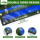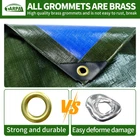 【16 Mil tarp waterproof】 Green/blue heavy duty tarp it has a 16 mil thickness,Made of tightly woven polyethylene fibers,the surface is compact,fine,and smooth, with higher density and toughness,achieving tear and wear resistance.tarp has double-sided thickened coating, doubling tarp heavy duty waterproof performance. 【Brass grommets and reinforced edges】tarp has rust-proof brass grommets, one every 17.7 inches,The brass grommets is evenly distributed and dense,Closer than other tarp,which is more convenient to fix and use,more resistant to wind weather.Reinforced with rubber inverted triangles at the corners and edges to make them more stable, provide long-lasting strength,tarp last use longer. 【Withstand bad weather】Whether it is heavy rain, strong winds and other bad weather,16mil heavy duty tarp will provide proper protection. Brass grommets are more stable and durable, and will not be torn by strong winds.Tarps 100% waterproof, keeps dry and clean. Bad weather is difficult to predict, but high-quality tarp can provide better service. 【Multi-purpose】 Quality tarpaulin can cover your vehicle, roof, boat, swimming pool, outdoor furniture, firewood, trampoline, can also be made into outdoor shelter, tent canopy and mat and for the garden patio shade,To meet your needs. 【Finished size·Double-sided use】 when you choose your need size, you get exactly that size, ensuring a perfect fit for your needs, and this heavy duty tarp waterproof has the strength and durability you need.Our tarp can be used on both sides, one side is green, the other side is blue, you can choose the appropriate color according to your needs.