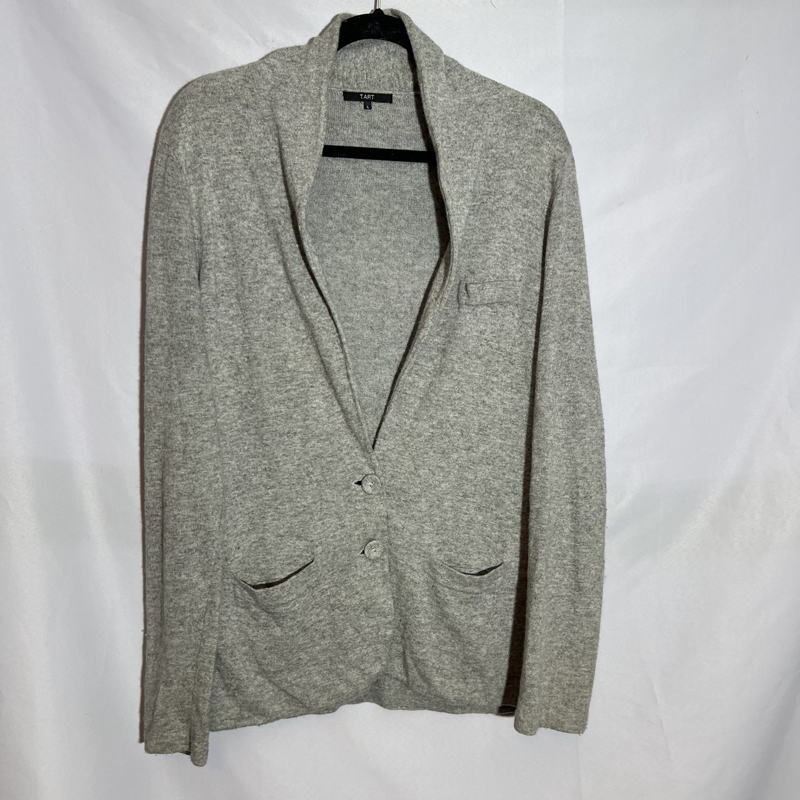 The Tart Collections Women’s Knit Wool Blazer Jacket in Gray, Size Large, is a stylish and versatile outerwear piece perfect for the winter and fall seasons. This mid-length blazer features a shawl collar, button closure, and pockets, making it suitable for casual occasions. Made from cashmere knit fabric, this blazer from the Tart Collections brand offers a touch of luxury and sophistication to any outfit, making it a must-have addition to any woman's wardrobe.