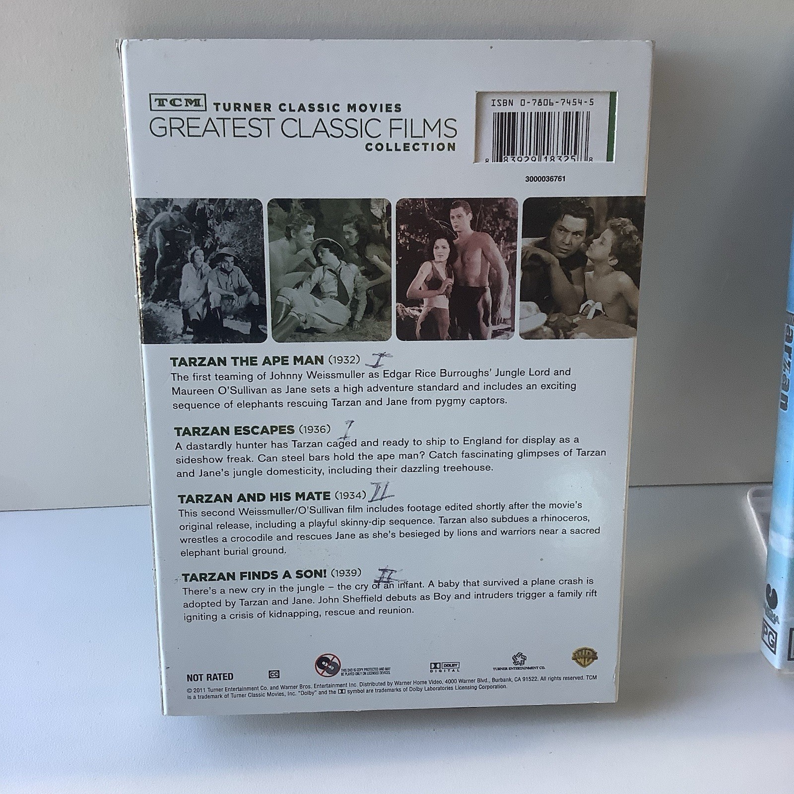 Includes two classic Tarzan DVDs with 7 total films 1.TCM (Turner Classic Movies) Greatest Classic Films Collection. Includes the following 4 films: Tarzan the Ape Man (1932) Tarzan Escapes (1936) Tarzan and His Mate (1934) Tarzan Finds a Son! (1939) 2. Tarzan Movie Collection. PAL Region 2 & 4 - Did not work in a regular DVD player but worked on a PS4 & computer. Includes the following 3 films: Tarzan Triumphs (1943) Tarzan's Desert Mystery (1948) Tarzan and the Huntress (1947) Starring the legendary Johnny Weissmuller and Maureen O’Sullivan, presented in their original full-screen format, with the option to toggle between English and French audio tracks. Each DVD boasts a collection of features including black and white sequences. Thanks for reading. Please let me know if you have any questions