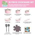 Product details Everything you need for your kitchen in one box! Set your kitchen up for success with this Tasty Clean Ceramic non-stick 16 piece cookware set. The better, stronger, and longer-lasting reinforced Clean Ceramic non-stick coating allows food to easily slide out of the pan. The non-stick coating is made without PFAS, PFOA, PTFE and PFOS for healthy cooking. When you're looking to store these pots and pans, use the included pan protectors to sandwich in between two pieces of cookware to allow for stacking and storing without scratching. The cookware also features a stainless steel induction base, making this cookware suitable for all cooking surfaces, including induction, electric, gas and glass. Better, Stronger, Longer-Lasting Non-Stick: This pots and pans set features a premium, reinforced Clean Ceramic non-stick coating that allows food to easily slide out of the pan Healthy Cooking: The ceramic non-stick coating is made without PFAS, PFOA, PTFE and PFOS Metal Utensil Safe: The durable non-stick is metal utensil safe, though we still recommend using silicone, wood or nylon tools when cooking Dishwasher Safe for Easy Cleaning: These pans are as easy to clean as they are to use and are dishwasher safe for fast and easy clean-up Awesome Quality: This cookware's heavy duty construction heats quickly and evenly Suitable for All Cooking Surfaces: Use this cookware on induction, electric, gas and glass! Pots and pans feature a stainless steel induction base A Pinch of This: Use the included ceramic bowls to pre-measure ingredients and make up sauces in advance to make cooking a breeze- comes in 6 ounce, 4 ounce and 2 ounce sizes The Right Tools for the Job: The turner and spoon are heat resistant and safe to use on non-stick surfaces Stack and Protect: Included cookware protectors (11.5 inch and 13.5 inch) are perfect for stacking and storing cookware without worrying about scratches Includes: 8 inch fry pan, 9.5 inch fry pan, 1.5 quart saucepan with glass lid, 2.5 quart saucepan with glass lid, 5 quart dutch oven with glass lid, 2 piece cookware protectors (11.5 inch and 13.5 inch), solid spoon, slotted turner, 3 piece ceramic prep bowls (6 ounce, 4 ounce and 2 ounce)