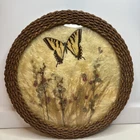 Taxidermy Butterfly With Dried Wheat Flowers Wicker Framed Wall Hanging Round
