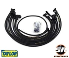 Taylor Cable 56028 8mm Streethunder Custom Spark Plug Wires For Chevy SB Part # 56028 Taylor Cable Application Street Thunder 8mm Ignition Wire Set; Custom Fit Chevy Small Block Over Valve Covers.; HEI Distributor; 90 deg.; Black For over 90 years, Taylor Cable Products have been the top choice of racers and enthusiasts for its value and high-performance features. Taylor Cable is an icon of quality and customer satisfaction in the automotive performance and racing markets. We are proud to have our Ignition Wire Sets firing some of the fastest race and street vehicles in the world. Custom Spark Plug Wire Sets are duplicate of your OE wire set. Each wire is cut to length and booted to match your original wires. 8.0mm StreeThunder wires feature a 500 ohm per foot resistance conductor wrapped in durable silicone blend double layer jacketing for heat protection, strength, and longevity. 8.0mm StreeThunder wires are designed to deliver superior performance at an affordable price.