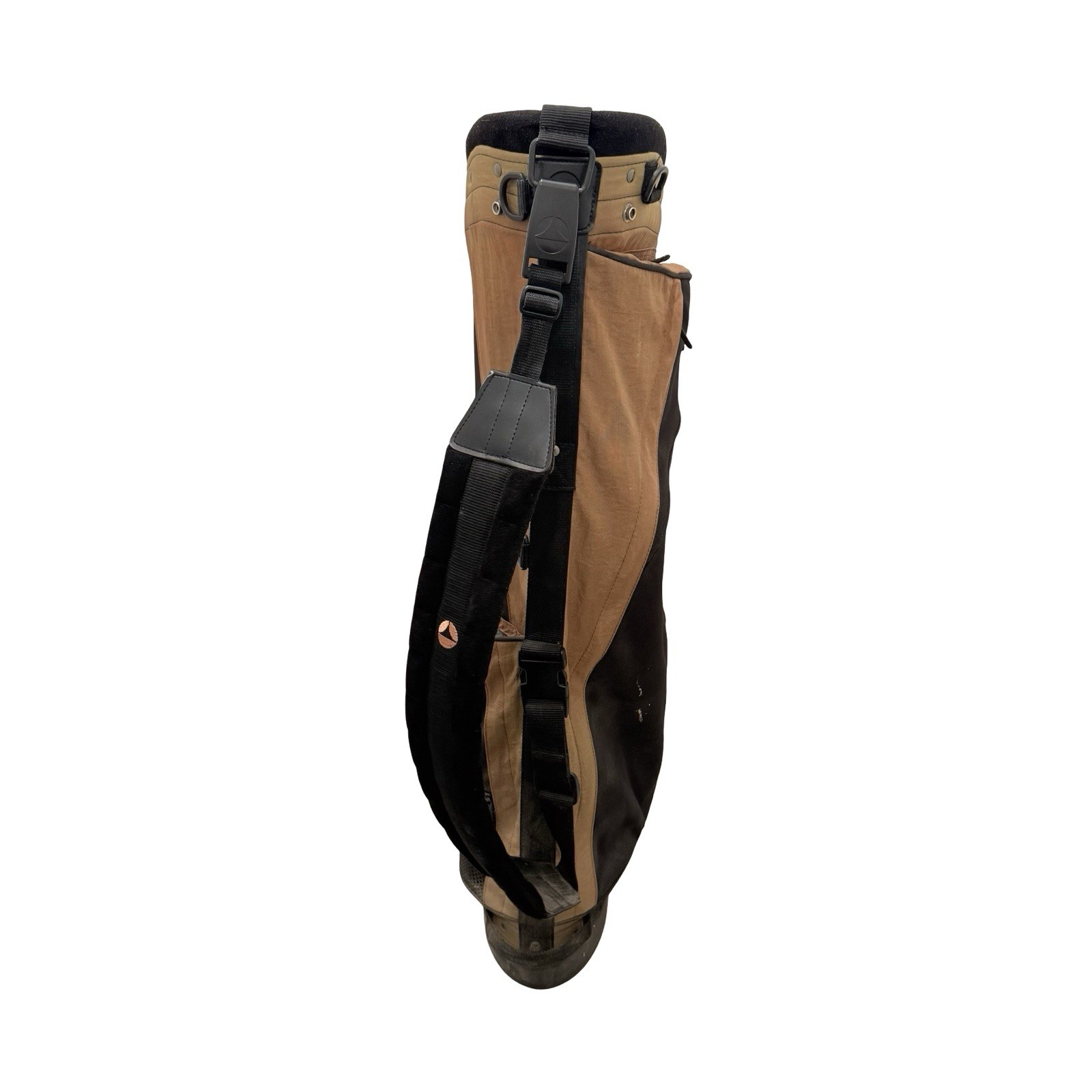 TaylorMade lightweight carry golf bag in black and tan colorway. This bag originally had stand legs, but the legs have been removed. Bag still stands upright on its own and functions perfectly as a carry bag. Great option for: • Walking golfers • Driving range use • Travel or backup bag • Junior or lightweight setup Features: • TaylorMade branding • Multiple zippered pockets • Padded shoulder strap • 4-way top divider • Lightweight design • Rain hood included • Strong handle + durable base Condition Notes: • Legs removed (see photos) • Bag still stands without issue • Normal cosmetic wear from use • Zippers work properly • No structural damage 📸 Please review all photos for exact condition.