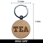 Tea Fun Text Engraved Wood Round Keychain Tag Charm