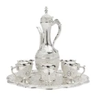Specification Material: Zinc Alloy Process: Die-casting, Polishing, Plating Color: Silver Style: Antique, Turkish Number of Tea Cups: 6 Dishwasher Safe: No Teapot Capacity: 250ml/8.45Oz Each Tea Cup Capacity: 30ml/1.01Oz Assembly Required: No Tea Cup Size (D*H):5*6cm/1.97*2.36in Pot Size(L*H): 12.9*22cm/5.08*8.66in Tray Diameter: 24.5cm/9.65in Package Size: 26*26*9cm/10.24*10.24*3.54in Gross Weight: 0.9kg/1.98lbs Net Weight: 0.84kg/1.85lbs Package Included 1*Tray 1*Teapot 6*Teacups Tea Set Vintage Coffee Set With Pot And 6 Cups For Home Decor Birthday Wedding Welcom to yiyahahaho Description This Turkish tea set is unique, exquisitely designed, and crafted. It includes a teapot, 6 teacups, and a tea tray, and each component has been carefully selected and polished to ensure its quality and durability. The teapot has a classic and elegant shape with beautiful carvings, adding an artistic touch to tea making. Let's sip tea from these carefully crafted teacups to feel the beauty of time and space and experience a journey through history. Key Features Sturdy and Durable: The products are made of high-quality zinc alloy and through the process of die-casting, polishing, electroplating, and dripping glue, with corrosion resistance , high hardness, high smoothness performance, and long service life. Large Capacity: The large capacity teapot (8.45Oz) and teacup (each 1.01Oz) can meet your needs for drinking with your family or friends. Multi-functional: This product can not only be used as a tea set, you can use it as a wine awakener, wine decanter, wine dispenser, and so on according to your preferences. It also can hold liquids such as tea, coffee, and wine. Convenient to Use: The design of the press to open the pot makes it easier for you to hold it, and the rounded edge treatment on the surface of the product makes it not easy for you to cut your hand in the process of using it. Easy to Clean: The polished smooth surface and simple construction make the product easy to clean with water. Enhancement of Taste: The exquisite pattern is a wonderful blend of art and emotion, which is your high-end luxury interior decoration product. It is a great blend of three elements: European palatial atmosphere, exquisite carvings, and bright colors, bringing you an unusual visual enjoyment. With this exquisite tea set, you can experience the rich traditions of Turkish tea culture in the comfort of your own home. Direct Use: You can use the product directly after receiving it without assembling it, thus saving you time and effort . An Ideal Gift: This product has a beautiful appearance, it is an ideal gift for weddings, engagements, housewarming celebrations, and anniversaries, it can bring blessings to your family and friends, tea lovers, and history enthusiasts . Details Eagle Beak Spout: The spout is designed like a delicate eagle's beak with beautifully rounded curves and an ergonomic design for easy pouring. Anti-break Lid : The newly upgraded break-resistant design provides you with higher quality assurance and allows you to replace the cover as needed. Delicate Carving: This product adopts the combination of traditional Chinese carving and European carving art, with the relief symbolizing happiness and auspiciousness, bringing good luck to your family. Delicate Tray: The bottom of the tray is beautifully textured with a large embossed floral pattern. The entire tray has a soft curved edge, just like a blooming flower. It can not only place teapots and teacups to decorate the home environment but can also place fruits and other items separately, which is practical. Handle: Its shape is sinuous, just like a dragon flying in the sky. It is not only beautiful but also easy to grip. Application This product is suitable for tea steeping and enjoyment in homes, restaurants, hotels, offices, tea art galleries, and other occasions. Specification Material: Zinc Alloy Process: Die-casting, Polishing, Plating Color: Silver Style: Antique, Turkish Number of Tea Cups: 6 Dishwasher Safe: No Teapot Capacity: 250ml/8.45Oz Each Tea Cup Capacity: 30ml/1.01Oz Assembly Required: No Tea Cup Size (D*H):5*6cm/1.97*2.36in Pot Size(L*H): 12.9*22cm/5.08*8.66in Tray Diameter: 24.5cm /9.65in Package Size: 26*26*9cm/10.24*10.24*3.54in Gross Weight: 0.9kg/1.98lbs Net Weight: 0.84kg/1.85lbs Package Included 1*Tray 1*Teapot 6*Teacups Notes After receiving the product, you are required to thoroughly clean the inside of the teapot and teacup before use. For dust cleaning, please use a soft wool brush or a hair duster to sweep gently and then wash with clean water, and do not wipe with a rough towel. For oil cleaning, please use a fine silk cloth or cotton cloth dipped in gasoline or oil cleaning agent to gently wipe wet, clean water wash. Please be careful in daily life to minimize the knock or indirect man-made damage, prevent sharp objects such as nails, knives, or blunt objects from scratching and collision, and avoid using liquid cleaners with chemicals. Please do not put it into the dishwasher to wash, so as not to damage the product. Please allow the slight color difference caused by the shooting light and 1-3cm error due to manual measurement, and make sure you do not mind before ordering. Payment Delivery details Terms of sales About us Contact us Payment We accept ebay payment 。 Fees such as import duties, taxes are not included in the item price or shipping costs. These charges are the buyer's responsibility. Delivery details Shipping: 2-9 working days to: USA Terms of sales We maintain high standards of excellence and strive for hundred percent customer satisfaction. Feedback is very important to us. We hope that you contact us immediately before you give neutral or negative feedback, so that we can address your concerns. It is impossible to address issues if we do not know about them! About us Your satis faction is our ultimate goal. We work hard to earn your trust and future business. Our certified technicians have teste