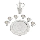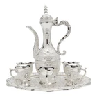 Vintage Metal Turkish Coffee Pot Set Turkish Tea Set with 6 Luxury Coffee Cups