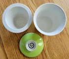 This Tea Spot Tech Teaware Green Ceramic Infuser Stepping Mug is perfect for steeping your loose leaf tea or tea bags. It's calming green color make it a great addition to any tea lover's collection. Made with ceramic material, this steeping mug/cup is reusable and has a 3.75 inches measurement across the top of the cup. The mug is lidded and includes a removable tea infuser basket. It is approximately 3.5 inches high without the lid, while measuring 4.5 inches with the lid. This pre-owned mug / cup is in very good condition with no chips or cracks. It does show some light spoon stir marks on the inside of the cup. Please look at each and every photo for the very best details and description. More info: -holds 8 ounces -handcrafted with high quality, lead-free porcelain -for loose leaf tea: add tea leaves to the infuser insert. As the tea steeps in hot water, leaves will unfurl and release the flavor and aroma into the brew. When tea is ready, the lid doubles as a saucer to hold the used tea infuser