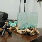 Versatile Size - This piece measures approximately 9 inches long, 8 inches high, and 7.5 inches wide, with slight variations due to its handcrafted nature, ensuring uniqueness in every item. Quality Craftsmanship - Crafted with care, this sculpture features a molten glass vase delicately formed over a teak driftwood base, creating an elegant and earthy decorative accent suitable for various purposes. Individual Beauty - The clear glass bowl is meticulously shaped over an organic wood base, resulting in a distinctive glassscape bottom, making it an exquisite addition to tables, counters, or desks, showcasing nature's artistry indoors. Our eBay Store About Us Add to Favorite Sellers Teak Driftwood and Melted Glass Square Vase, Bowl, or Planter – Approximately 8 Inches High – Nature-Inspired Elegance for Home and Patio Decoration Versatile Size - This piece measures approximately 9 inches long, 8 inches high, and 7.5 inches wide, with slight variations due to its handcrafted nature, ensuring uniqueness in every item. Quality Craftsmanship - Crafted with care, this sculpture features a molten glass vase delicately formed over a teak driftwood base, creating an elegant and earthy decorative accent suitable for various purposes. Individual Beauty - The clear glass bowl is meticulously shaped over an organic wood base, resulting in a distinctive glassscape bottom, making it an exquisite addition to tables, counters, or desks, showcasing nature's artistry indoors. Natural Charm - Ideal for succulent gardens, air plants, greenery, herb cultivation, or crafting personalized terrariums and fairy gardens, this piece adds a touch of the natural world to any space, bringing a sense of tranquility and beauty. Perfect Gift - Whether for your home or as a thoughtful present for loved ones, this unique and versatile glass and teak sculpture makes an excellent gift choice, showcasing the beauty of nature through artistic craftsmanship. Experience the perfect fusion of nature and artistry with this captivating sculptural vase. The square bowl, crafted from molten glass, features organic shapes that beautifully capture nature's essence. Its elegant design is complemented by the natural contours of teak driftwood, creating a striking contrast. Measuring approximately 9 inches long, 8 inches high, and 7.5 inches wide (sizes may vary slightly), this versatile piece offers endless possibilities for creative expression. Use it to showcase house plants, cultivate fresh herbs, or design a whimsical fairy garden. Alternatively, fill it with vibrant stones, shells, or dried flowers to create a stunning centerpiece. The transparent glass, with its molten elegance, enhances any space with its organic charm. Whether used as a decorative focal point, a terrarium, or a vessel for floral arrangements, this piece adds a touch of natural allure to your home. Each element is expertly crafted by artisans, embodying the beauty of nature and enriching your décor with unique sophistication. Product Details Color Brown Height 8 Length 9 Weight 6.3 LB