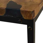 This unique coffee table, made of real teak with black resin, exudes a rustic charm and is a real eye-catcher. The coffee table can also be used as a side table, end room table, etc. The tabletop is fully handmade out of genuine teak and provides a stable and secure surface on which you can place your drinks, vases, fruit bowls or decorative items. The steel frame makes this coffee table very stable, sturdy and durable. Assembly is easy. Important note: The color may vary from piece to piece, making each of our coffee tables unique; the delivery is random. Tabletop material: Genuine teak with resin filling (oil finish) Frame material: Steel Dimensions: 43.3" x 23.6" x 15.7" (L x W x H) Handmade Easy assembly Shipping Restrictions Due to the limited access of our couriers, this item cannot be delivered to the following locations: Alaska Federated States of Micronesia Guam Hawaii Marshall Islands Military Posts (APO / FPO) Palau Puerto Rico US PO BOX Virgin Islands Our customer support will contact buyers for orders with no shipment service, and these orders will be cancelled and fully refunded afterwards.
