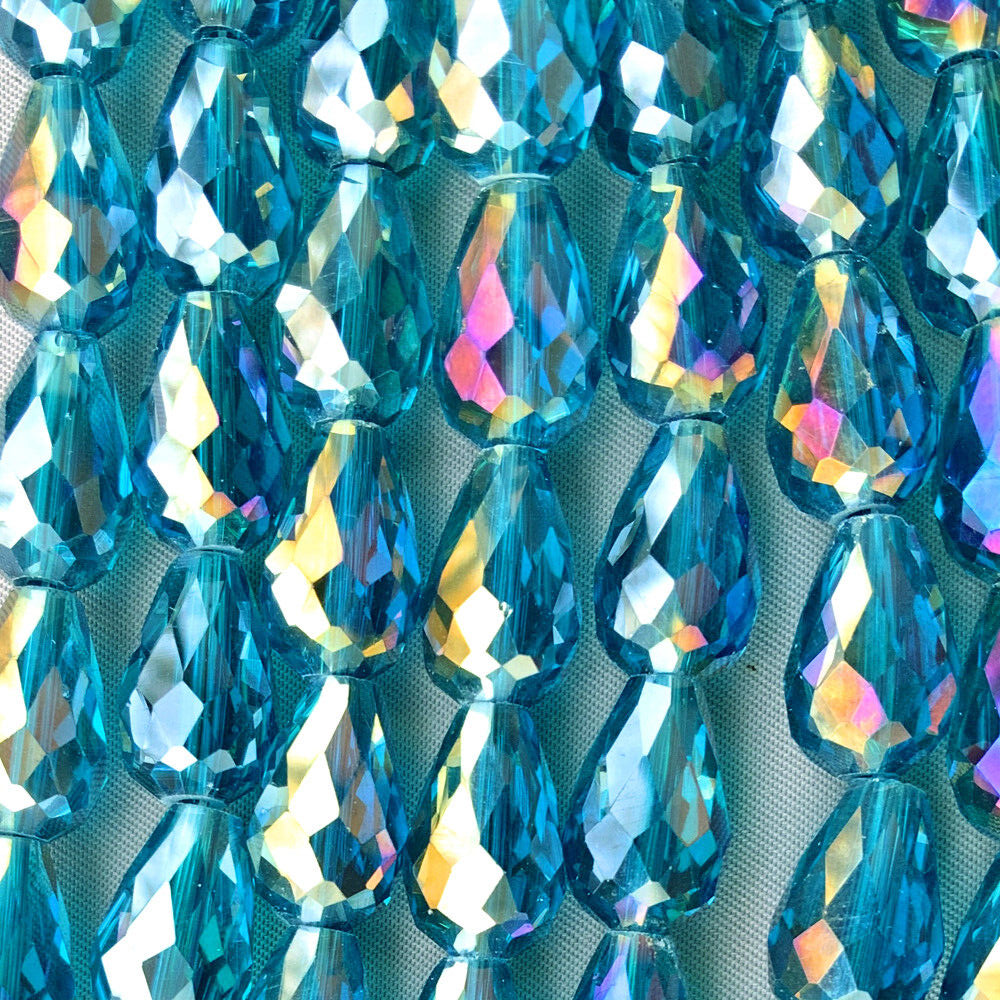 These gorgeous crystal beads will create a one of a kind look in your handmade jewelry designs and craft projects. These crystals are a teardrop shape with many facets on the front and back. PLEASE NOTE: As is the nature of Chinese crystal glass, these beads may have small nicks and scratches on them. We combine shipping on all orders. Please make payment within 5 days. We accept PayPal only. Please check out our eBay store and Profile page for a great selection of crystals, beads, findings and so much more. Send a Message before you buy if you have questions. Thanks for looking! All photos have been taken indoors with daylight, but as always, computer and mobile screens display colors differently. Width: 10mm Length: 15mm Hole size: about 1mm Bead count: Q12 drops per strand Pkg quantity: Q2 strands per package, Q24 drops total Strand length: about 6.5" inches long Material: Chinese crystal glass Origin: East Asia