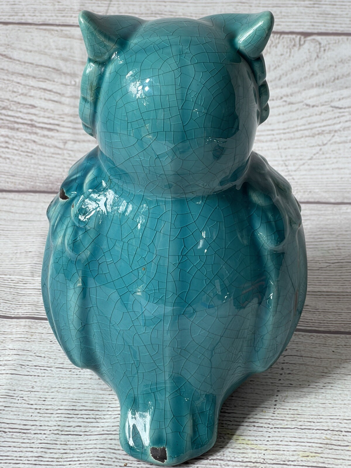 Teal Ceramic Owl Large 9” Tall Aged Look Decor. This is super pretty! Made to look aged. Pretty large. No chips or cracks. (The dark spots are made like that. ) please see all photos.