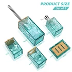 Exclusive Design 5 Pcs beach ocean Bathroom Accessory set 1 X Soap dispenser 1 X Toothbrush holder 1 X Cotton swabs holder 1 X Soap dish 1 X Toilet brush with holder Soap dispenser: The pump head is made of ABS, ensuring rust resistance. Transparent material allows you to see when it needs to be refilled. Suitable for use with liquid hand soap, shower gel, shampoo, lotion, dish soap, etc. Toothbrush holder: With a wide opening, it can accommodate regular toothbrushes, makeup brushes, toothpaste, and electric toothbrushes. Cotton swabs holder: Our cotton swabs holder can hold cotton swabs up to 4 inches in length. Soap dish: The bamboo inside enhances the overall look of the set. Placing the soap on the bamboo allows water to drain, facilitating quick drying. The bamboo can be removed when needed to hold small items. Toilet brush with holder: The brush is suspended, preventing it from soaking in water and ensuring quick drying. The bamboo lid prevents splashes while cleaning the toilet, keeping your hands protected. Designer's Message: With a unique design that draws inspiration from stone pathways and incorporates bamboo to represent nature, our intention as designers was to capture the essence of those cherished moments on your very own stone pathway, whether you're strolling through a park or exploring the outskirts. We wanted our product to serve as a reminder to appreciate the beauty of every moment in life. Boho bathroom Decor: This turquoise bathroom accessory set combines acrylic with bamboo, creating a stunning aesthetic. The pattern of the set resembles a stone pathway, making it a perfect match for boho and neutral bathroom decor styles. Whether in an apartment, restroom, office, or home, this set adds an elegant touch to any space. It is versatile, suitable for both guest bathrooms and master bathrooms. High-Quality Acrylic Material: This light blue bath accessories set for the bathroom is crafted from premium A-grade acrylic material, ensuring exceptional quality. With a light transmission rate of over 98%, our bath accessories set has a stunning glass-like appearance, resembling the beauty of crystal. It eliminates any sense of cheap plastic, adding an elegant touch to your bathroom decor. Sturdy: Unlike glass and ceramic, this coastal acrylic bathroom sink accessories set is less likely to break, making it highly suitable for households with children.This bathroom kit is always a perfect decoration for your bathroom. 5pcs Beach Ocean Bathroom Accessories Set Complete:Including toothbrush holder,soap dispenser, cotton swabs holder,soap dish,toilet brush and holder,great bathroom vanity set for bathroom organize. Gift Idea: This bath accessories set features a neutral design, available in colors of clear, black, lavender purple, sage green, and teal blue. It is suitable for men, women, girls, boys, and children, making it a great gift for family members, friends, and colleagues