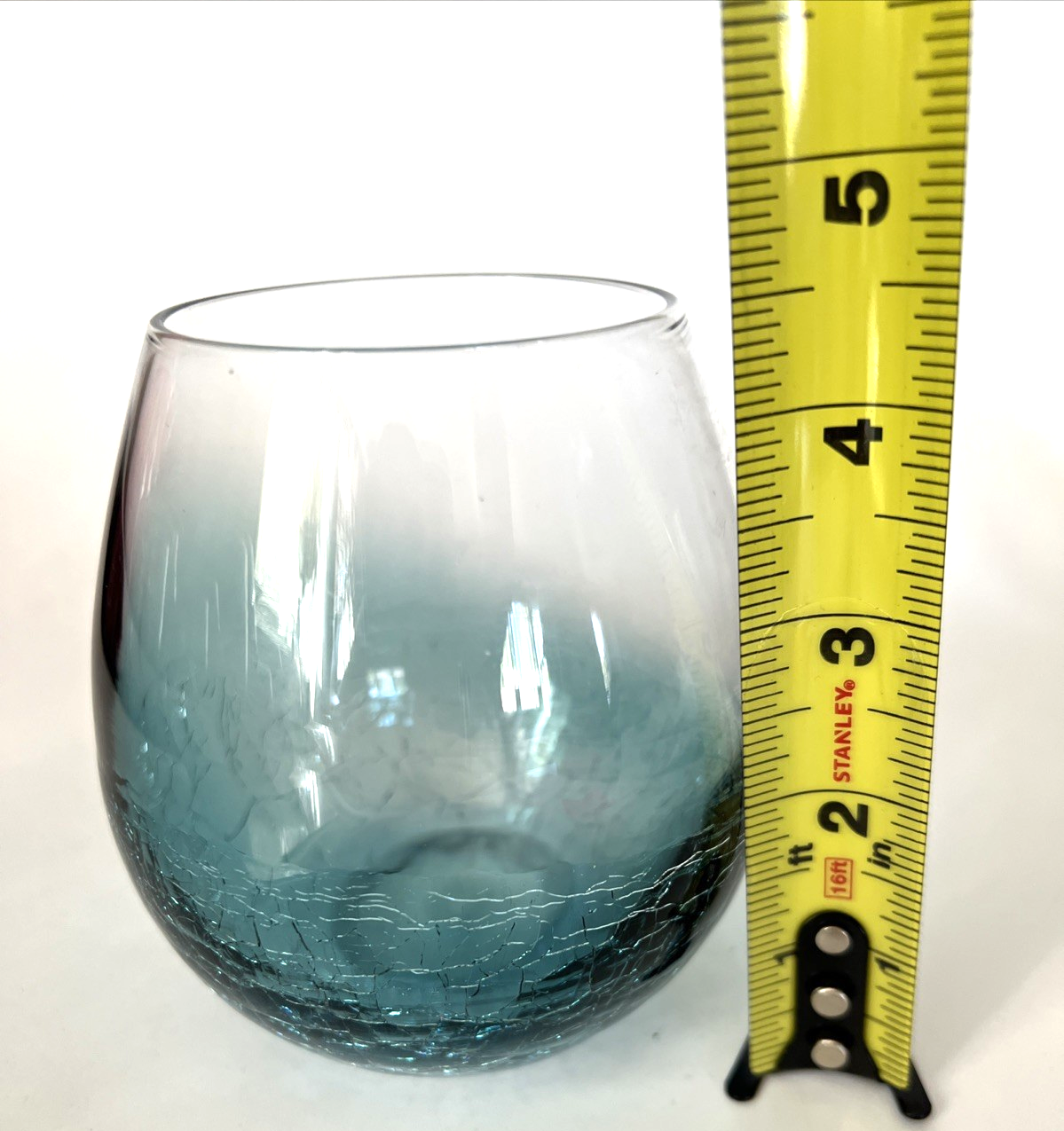 Teal Blue Crackle Glass Stemless Tumbler Wine Glass - 16 oz Pier 1 I will pack with care and get it to you ASAP I will combine shipping if you buy more than one Thanks for looking !