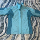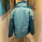This women's jacket from The North Face is designed for winter, fall, and spring outdoor adventures. The teal blue windbreaker features a lined canvas construction with a stand-up collar and full zip closure. It has inner and zipped pockets for storage to protect any items against the elements. The jacket is water and wind-resistant, making it suitable for skiing and other outdoor activities. Perfect for casual wear, this jacket is versatile and practical for staying warm and stylish in colder weather. No rips or tears No hood Has a beautiful teal liner The North Face fleece jacket with 2 pockets. Zips into the jacket to keep you warmer for any chilly cold winter days. Please see pictures for measurements and details All our products are in a non smoking home. Kindly send me a message if you have any questions Thank you for looking :) Bin A2