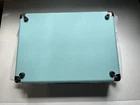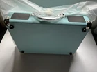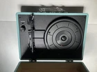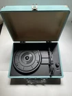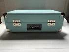This teal Bluetooth wireless suitcase vinyl record player with speakers is the perfect addition to your home entertainment system. Enjoy your favorite vinyl records with ease thanks to its Bluetooth connectivity, which allows you to effortlessly connect it to your device. With its compact size and lightweight design, this record player is easy to move and store, making it a great choice for those who want to keep their vinyl collection organized. The suitcase-style design also adds a touch of elegance to any room, while the built-in speakers provide clear and powerful sound. Whether you're a music lover or just looking for a stylish addition to your home, this wireless vinyl record player is the perfect choice. This unit is unbranded, brand new, and sold as is.