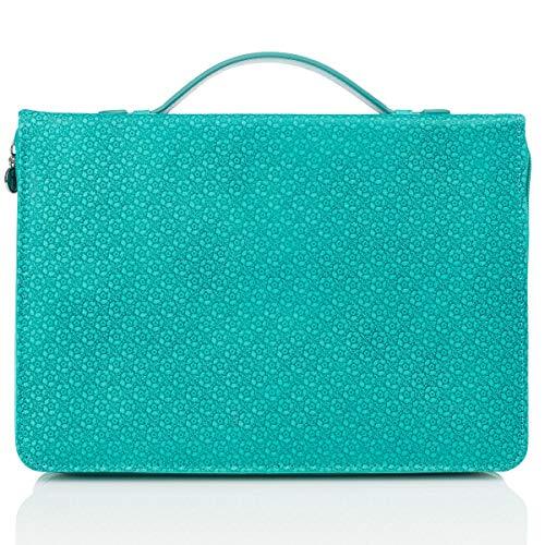 The Blue Botanic Butterfly Blessing Bible Cover features the artwork of Jane Shasky, with her fresh botanicals embellished with elegant calligraphy fashioned as a "carte postale" serving as a background for a signature blue butterfly. The Jane Shasky design is silk-screened on the coated front panel. The body of the cover is embossed with flowers. There is an exterior zipper with a cross engraved zipper-pull, a convenient lay-flat spine handle and 2 pen loops inside. All man-made materials. The Large size comfortably holds all popular Bibles such as The New Spirit-Filled Bible, The Life Application Study Bibles and the NIV Study Bible, as well as many other books and Bibles up to 9.50 x 6.75 x 2.25 inches. Durable: Protect your Bible from life’s mishaps with this teal fashion Bible cover for men and women made from sturdy faux leather material that is easy to clean and will withstand daily wear. Scripture Bible Case: This stylish teal case features scripture sentiment from Ephesians 2:8 over a floral/butterfly design. A panel debossed with a flower motif wraps around the spine and back. Medium, Large Size: Note that Amazon specifications are exterior Bible cover dimensions. To ensure best fit measure Bible precisely & compare to size chart. Allow extra room to avoid a too snug fit. Convenient Accessories: Handle is easy to hold, or slip this Bible cover into a larger bag for easy travel to church or Bible Study. Interior pen loop secures your pen or highlighter when not in use. Secure Zipper Closure: Ensures your Bible stays clean and safe inside. Slip your loose notes, bulletins, or tissues inside for easy storage.