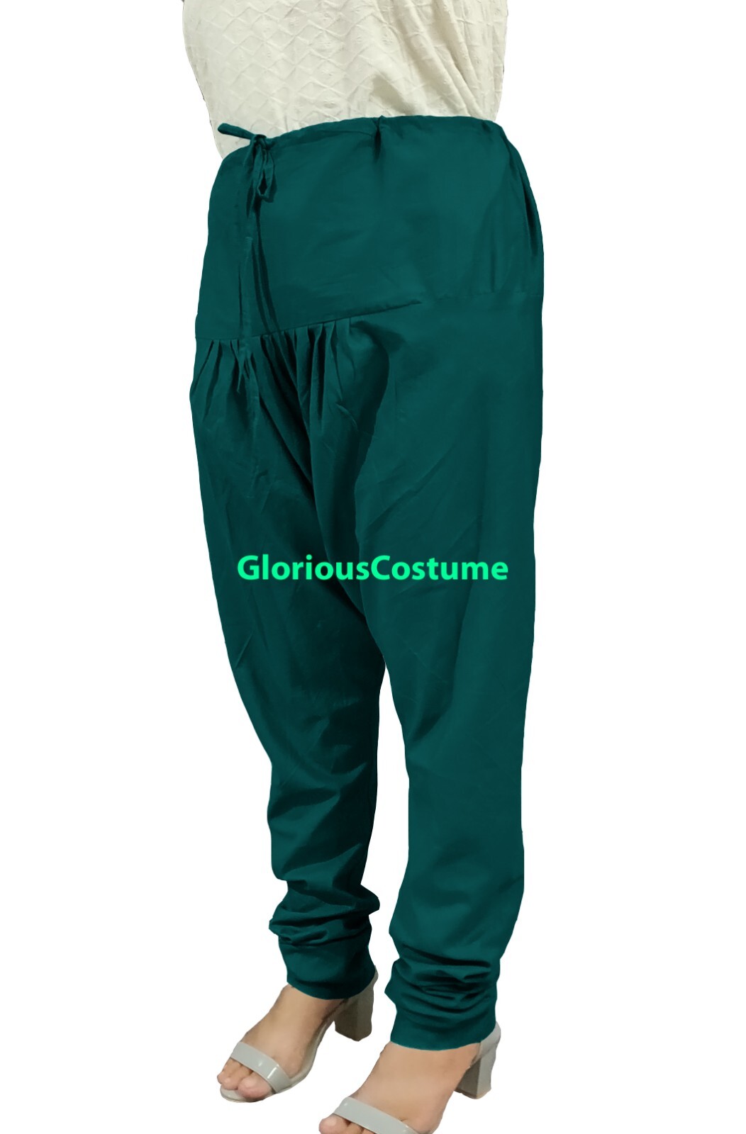 GloriousCostume Teal Indian Churidar Pants 100% Cotton-Tights Kurti Salwar Kameez Features & Measure (Approx): Waist : Select Your Size (Drawstring) Color : Teal Style : Churidar Pant Fabric : 100% Pure Cotton Condition : Brand New Quantity : 1 Churidar salwar pant We use Best Quality Plain 100% Soft Cotton Fabric. The length of churidar is longer the actual body length to make the pattern of fabric gathering at ankle. Please check the pictures of churidar style above the description. Please do accommodate us as color may vary in actual product received Due to Different computer resolution.. The churidar is pure cotton fabric Indian traditional pants as shown in the picture. The waist belt is bigger with draw string to pull & wear. We use Best Quality Plain 100% Soft Cotton Fabric We carefully selected the best quality for you. The skirt floats the best! We use 100% pure cotton fabric to make these fun skirts. You will love them for Gypsy and Tribal Dance. Skirts have gathered 4 tiers of fabric. A waist has both elastic and draws string for maximum adjustability (double security!). These are well made skirts and lots of fun for dancing. When you wear this skirt, you look amazing. Work wonderful especially when you spin. We are sure that you will love skirt. The color comes out wonderful. I am sure you will adore the color, too. Skirts available in a large variety of colors. Please do accommodate us as color may vary in actual product received due to different computer resolution. This listing is only for skirt other accessory shown like top etc is not a part of the item. Worldwide Free shipping We do offer combine shipping with discount of 20% in shipping charge in each additional items purchased on same day. It will take up to normally 15 to 20 days to receive items depends on how fast it clears the customs. We also ship fast so please contact us for fast shipping. If you are not satisfied with the product, before leaving any feedback Please contact us in order to help resolve any issues. Finally, in case of dissatisfaction, we will give you full refund Item Price (Less Shipping Charge). Please bid with full confidence, we are sure you will definitely like our product. For any kind of query - related to product description, difficulty in payment, shipping timing or want to alter the product as per custom measurement, you are free to ask. We will be glad to assist you 24x7, feel free to ask. Contact us via Ask a question link. We are not responsible for any customs duty or tax..