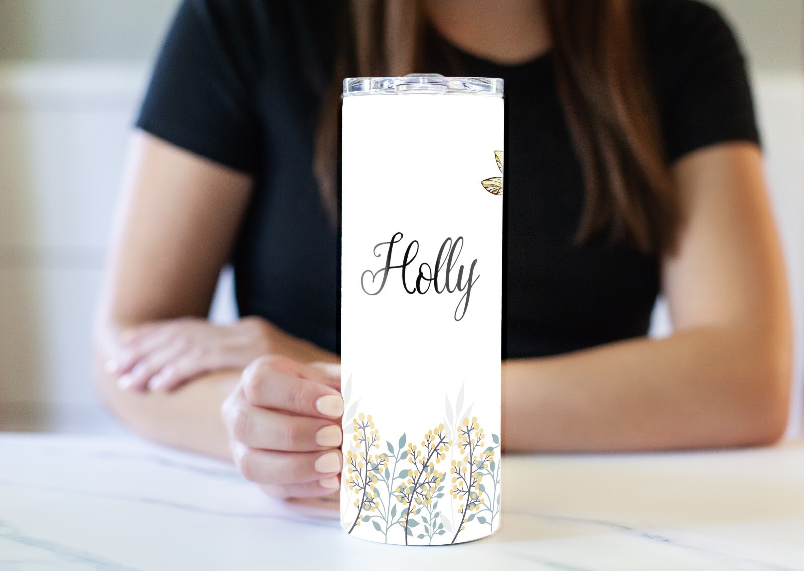 This skinny tumbler features a teal dragonfly in a soft spring meadow background design that will put a smile on your face every single time you look at it or drink from it. Customize it with your name or monogram and have a uniquely designed coffee cup that everyone will want. Our 20 oz tumbler has a sunflower with a bronze and gold background design which can be only be found at Destination Unlimited Designs and can be personalized with your name or monogram The insulated tumbler has a double wall internal layer and is vacuum sealed and manufactured with a high-quality BPA-free stainless steel. This ensures that your drink will remain hot or cold longer Custom gifts for the person who needs a travel tumbler with an airtight, spill-proof lid that slides open to use a straw (included) and a black silicone base that prevents the tumbler from slipping This travel tumbler is a great healthy and reusable coffee cup alternative. Our metal coffee mug does not contain micro plastics that are harmful to you and the environment. Get healthy. Go green Comes in a white gift box for easy gift giving or for safe keeping when not in use