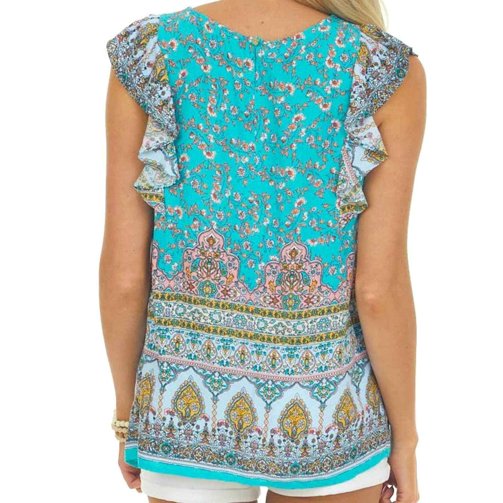 Teal Floral Ruffle Sleeve Blouse ~Color- Teal Floral Print ~Size- Small ~ Flawless **Worn one time!