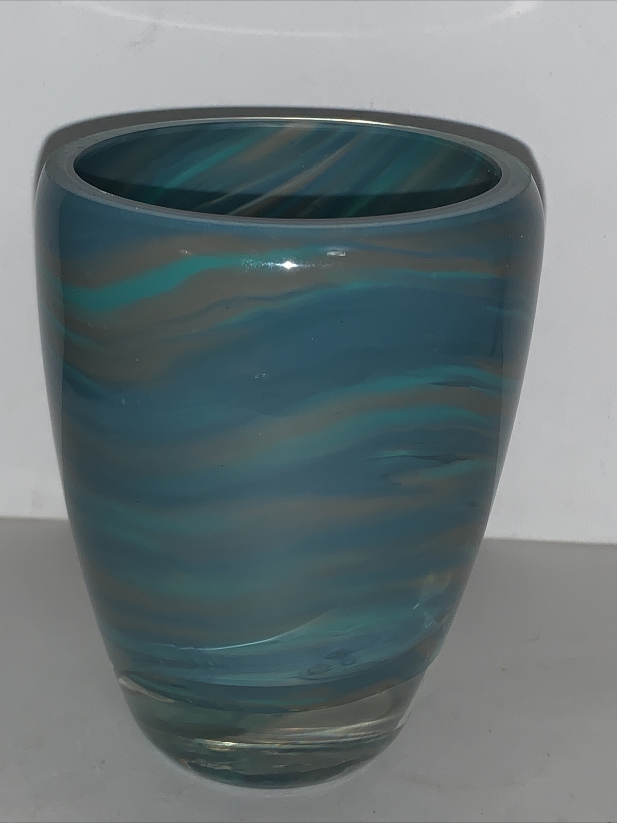 Measures approx. 4 1/4 inches tall by 2 3/4 inches wide at mouth. No chips or cracks. Clean. Please see pictures. Don't miss out! The perfect gift for yourself or that special someone. Economy shipping, US only. Questions? Please ask. Make me an offer and take home this TEAL ALABASTER ART GLASS VOTIVE CANDLE HOLDER today! Don't miss out! ref pur feb 11 25 23